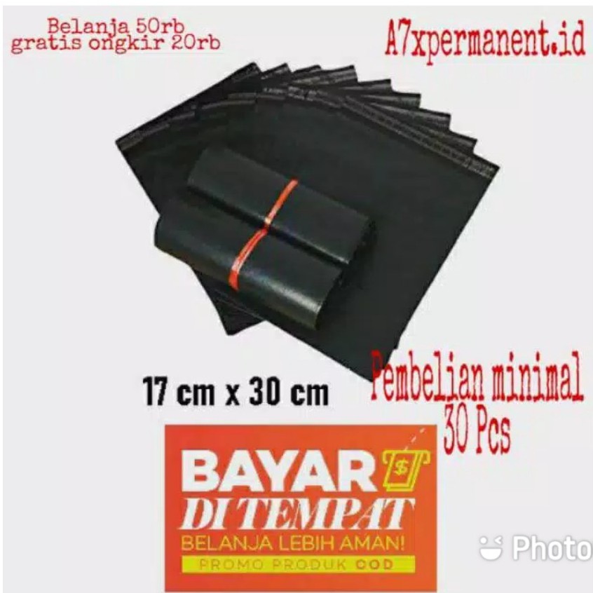 PLASTIK ONLINE SHOP + LEM / POLYMAILER TEBAL 17X30Ukuran :17X30CM TEBALTersedia Ukuran* 17x30Warna: HitamHARGA PER 1 LEMBARMINIMAL PEMBELIAN 30 LANGSUNG DIPROSESSpesifikasi :* Ketebalan : 0,06 mm (60micron)* Lebar 17cm x Panjang 30cm termasuk panjang penutupKelebihan :1. Praktis dan cepat dalam mengemas produk2. Plastik tidak tembus pandang sehingga aman dari kurir-kurir nakal3. Halus berkualitas premium4. Perekat yang kuat (tidak memerlukan lem tambahan)5. Waterproof6. Elastis (Tidak Gampang Sobek)SILAHKAN DIP