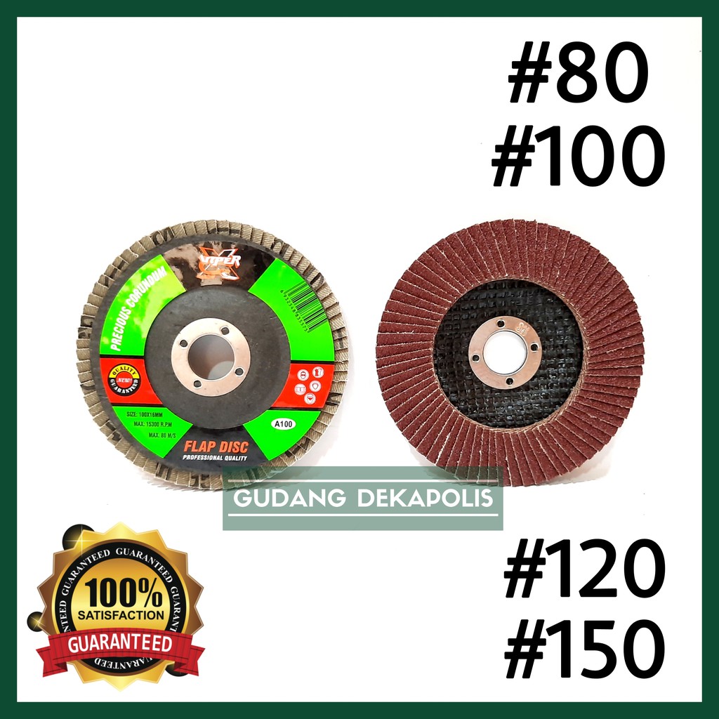 Promo Perlengkapan di Kota Tomohon Amplas Susun 4" Amplas Gerinda Tumpuk Flap Disc Viper Grit 80 100 120 150 dari Gudang Dekapolis Kab. Malang