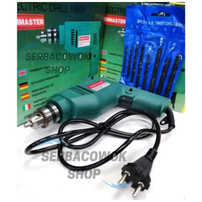 Name: Mesin Bor Listrik Bor Tangan Kenmaster 10mm Plus Mata Bor Set Besi