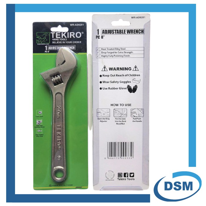 Deskripsi TEKIRO KUNCI INGGRIS 8 INCHI WR-AD0281ITEM CODE : WR-AD0281ADJUSTABLE WRENCHSIZE : 8"- Laser scale- High fully polishing finish- Heat treated alloy