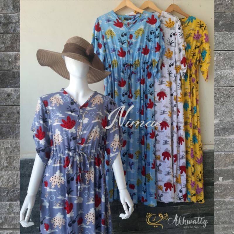 *Homedress Nimas by Akhwatiy*Detail:Bahan rayon twillBusui friendlyTali belakangSaku kananDetail size (+-) Rok pendek S 98/110 M 102/110 L 108/110 XL 114/110 Jumbo 134/110 Untuk rok panjang PB 130Price list Rok pendek 113rb Rok Panjang 123rb Jumbo +12rbBaarakallahu fiykumNb: *warna dalam gambar tidak 100% sama dengan aslinya*toleransi perbedaan size(LD) +-2cm*Kain rayon twill biasanya menyusut sekitar 2cm setelah penc