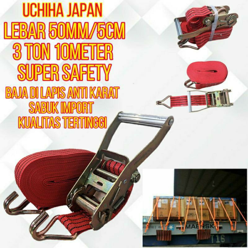 Hanya jual produk berkualitas tinggiDijamin kuat dan awet.Barang impor luar negeri. Besi sudah dilapis anti karat. Silahkan diorder dijamin puas banget. Mumpung ada promo besar" an dapatkan diskon super deal . Pembelian banyak dapat harga khusus.- Lebar: 2" (50 mm)- Total Panjang: 10M- Trouble-Free Push Button Quick Release- Heavy Duty "J" Hook Provide a Strong Grip- Ideals for Trucks, Trailers, or As a Multi-Purpose Tie Down- Tie Down Capacity: 3 Ton - Material: Poly