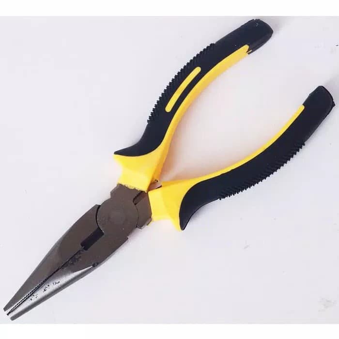 Tang Lancip merek good* Size 6" [150mm]* Special Deep hardened Jaws for durability* Dual Hardened serrated jaws * Special Hardened cutting blade* Special Nickel electroplated for anti rust* Dual color handle sleeve* Comfortable & ergonomic han