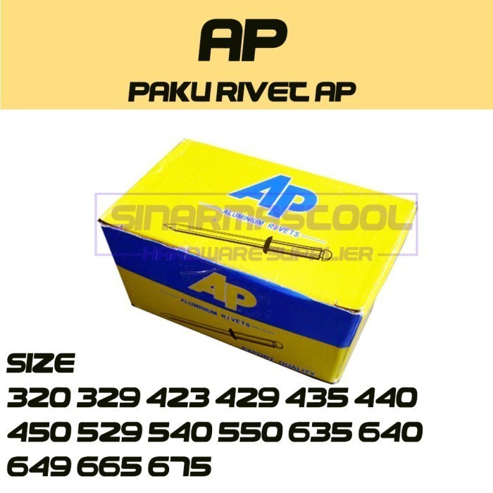Mengingat banyak hal menarik dan menguntungan, makin banyak orang-orang menyatakan bahwa mereka berpindah ke belanja berbasis web di Sinarmastool sekarang untuk mengulak Paku Rivet Ap 435 (1000pcs). Paling diperlukan dalam memahami inspirasi pelanggan on line. Pikirkan hal ini, dan Anda mau membuat itu bergegas ke online shop Kau. Pahami apa pun yang diinginkan konsumen dan kerjakan - sambungkan ke ide Kalian semua jalan supaya Kamu sanggup memenuhi keinginan tersebut, melalui pengetahuan Kamu yang terfokus, ratifikasi ongkos yang agresif, pelayanan konsumen, serta banyak lagi. Paham stimulasi, mendorong munculnya belanja on line sangat bermanfaat sebelum membayar Perlengkapan .