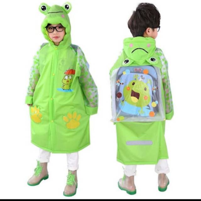 Name: (bahan Tebal) Jas Hujan Anak Motif Hijau Keropi Dengan Ruang Ransel