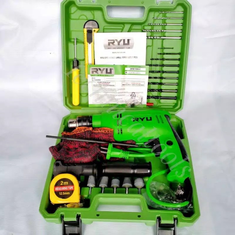 Deskripsi RYU MESIN BOR SET BESI / BETON / ALUMUNIUM 13MM RID 13Mesin bor IMPACT dari RYU ukuran 13mm dapat digunakan dengan mata bor BESI, KAYU dan BETON hingga ukuran 13mmSpesifikasiDAYA : 600 wattKecepatan tanpa beban : 0 - 2800 RpmTEGANGAN : 220 voltFREQUENCY : 50 hzUkuran mata bor : 1,5 - 13 mmAksesories :- 9pcs mata bor (1,5 - 8 mm)- 5pcs mata bor grinder- 1pcs meteran 2m- 1pcs obeng bolak balik (+-)- 1pcs pisau cutter- 1pcs pencil kayu- 1set sarung tangan- sekrup dan fischer* PENGIRIMAN CEPAT* PRODUK ORIGINAL 100%* PRODUK GARANSI 6 BLN* FHOTO PRODUK 100% PRODUK STOCK* PEMBELIAN PARTAI DAN ECERRYU BY T