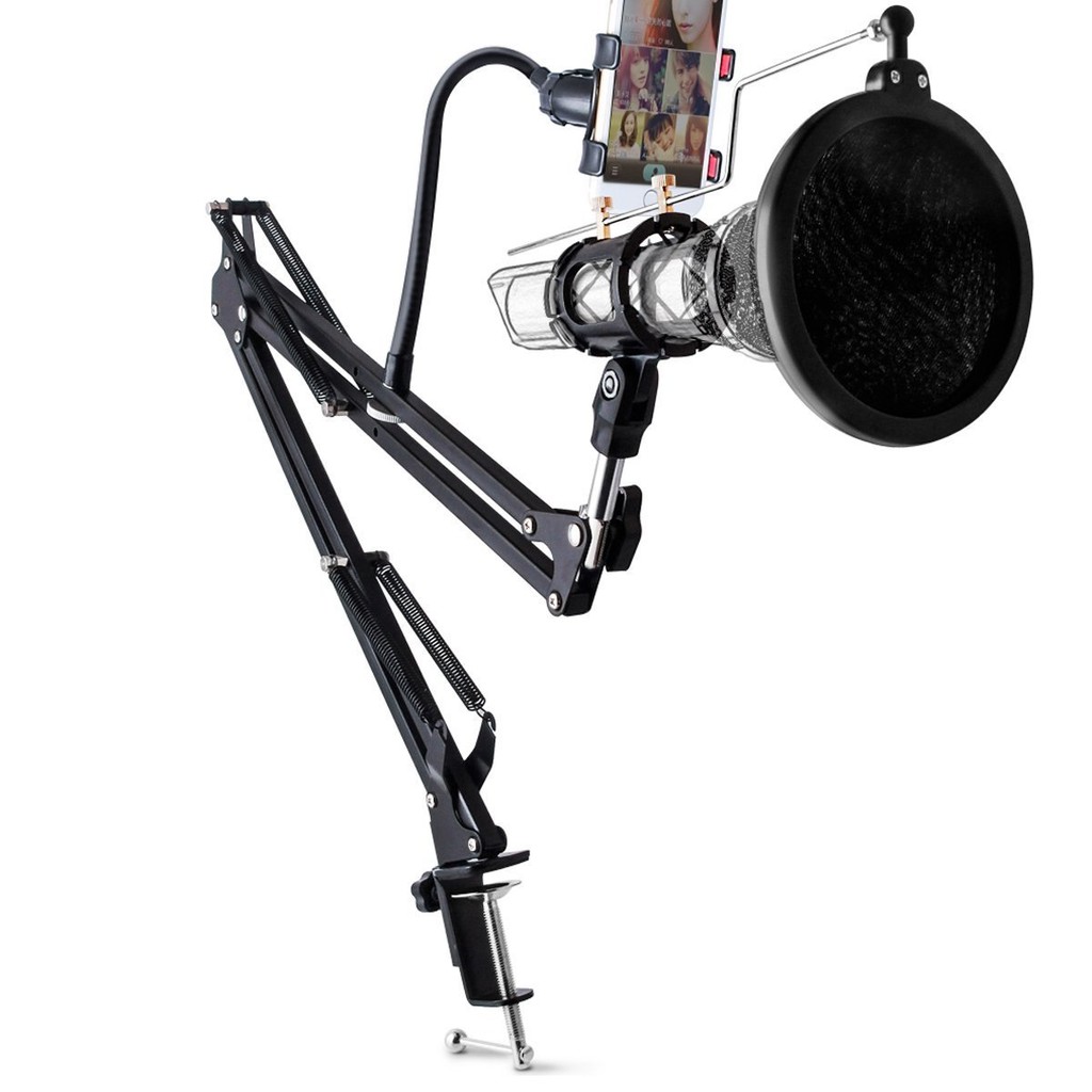Holder Microphone Condenser ini sangat berguna untuk keperluan recording lagu, podcast atau bernyanyi. Dilengkapi dengan holder smartphone yang dapat berputar 360 derajat, memudahkan Anda untuk melihat lirik lagu ataupun tangga nada yang sudah Anda s