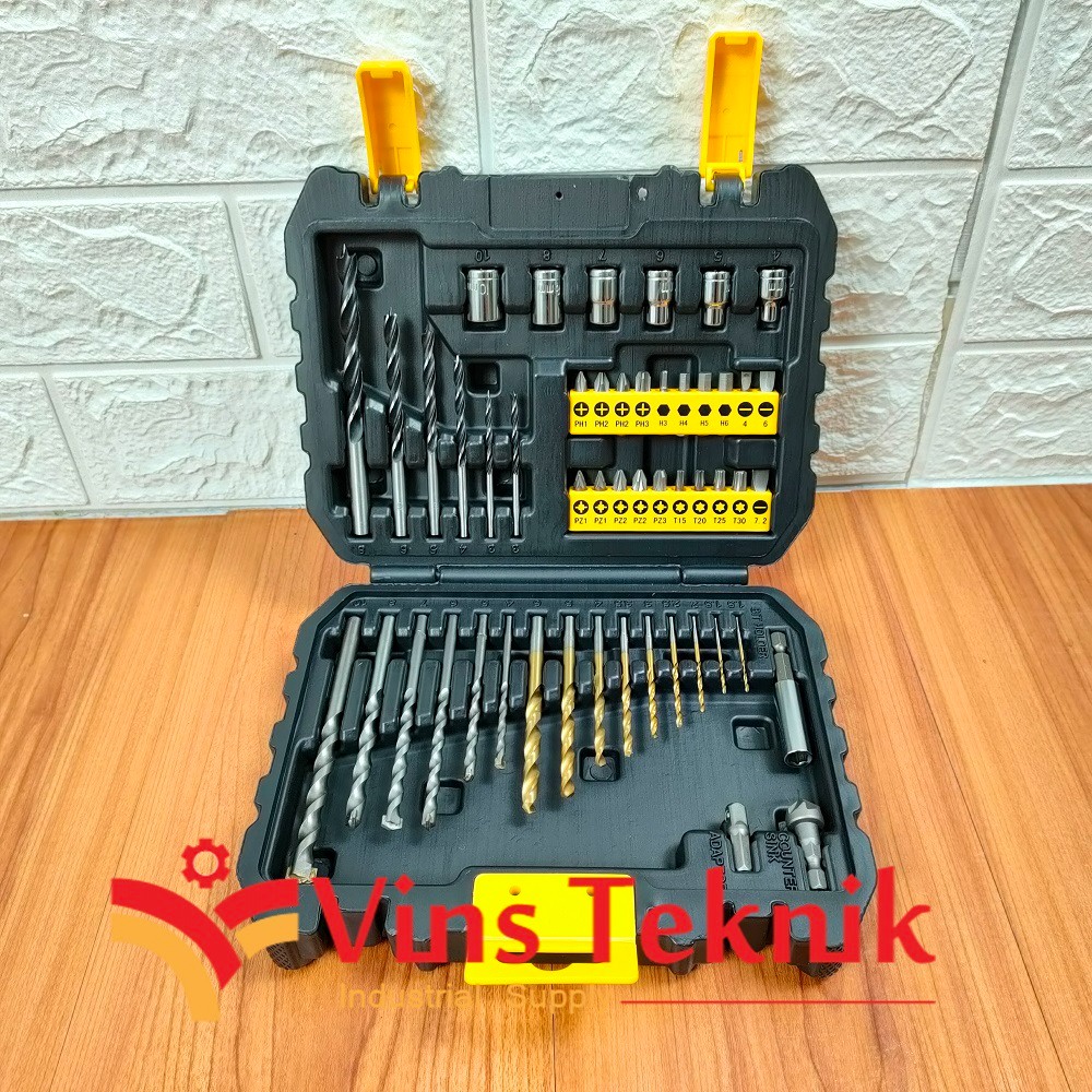 Stanley 50 pcs Accessories set | Mata Bor Mata Obeng set- STA88546-XJSpesifikasi:Berat: 1.26 KgDimensi Produk: 30 x 20.5 x 6 cmJumlah produk: 50 buahKelengkapan:* Mata Bor Kayu: 3mm x 2, 4mm, 5mm, 6mm, 8mm* Mata Bor Besi: 1.5mm x 2, 2mm, 2.5mm, 3mm, 3.5mm, 4mm, 5mm, 6mm* Mata Bor Beton: 4mm, 5mm, 6mm, 7mm, 8mm, 10mm* Mata Obeng Phillips/Plus (+): Ph1, Ph2 x 2, Ph3* Mata Obeng Slot/Minum (-): SL4, SL6, SL7.2* Mata Obeng Pozidriv/Bintang: Pz1 x 2, Pz2 x 2, Pz3* Mata Obeng Torx: T15, T20, T25, T30* Mata Obeng Hex: HX3, HX4, HX5, HX6* 1x Magnetic Holder* Konektor Mata Obeng: 4mm, 5mm, 6mm, 7mm, 8mm, 10mmStanley Ori